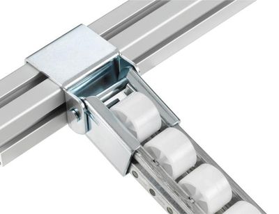 08.00710.00Die Verbinder für Rollenschienen Typ 40 können auf Stahlrohre 40x40 oder Alu-Profile 40 aufgesetzt werden!