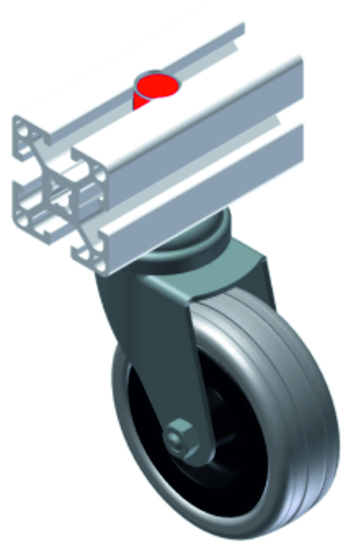 Anbausatz D für Transportrolle Ø 80 mm und Ø 125 mm mit Rückenloch Ø 13 zur nutseitigen Montage am Profil, Nut 8
